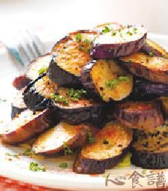 4.取一盘,先放上作法3的茄子片,再淋上作法2的酱汁,趁热食用即可。