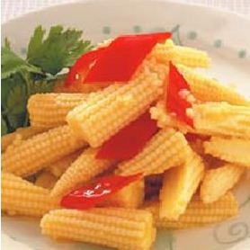 玉米笋150公克,辣椒丝5公克,蒜末5公克,白醋1小匙,盐1/6小匙,细砂糖1小匙,香油1大匙