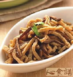 1.干香菇泡软切丝备用。