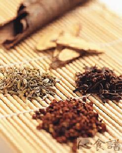 小茴香5钱,花椒2钱,甘草2片,丁香1钱,桂皮1钱,辣豆瓣酱2大匙,蚝油2大匙,沙茶酱2大匙,辣油1小匙,蒜头5瓣,姜片5片,辣椒2根,米酒1大匙,冰糖1大匙