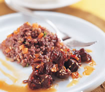 1.糙米和红萝卜丁分别蒸熟,再一起拌匀备用。