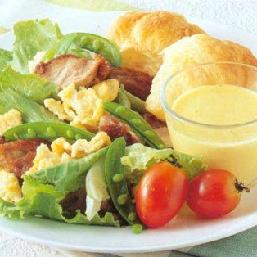 【咖喱沙拉酱】作法:将咖喱粉1/2大匙,沙拉油、白醋各1小匙,盐1/4小匙放入非金属碗中调拌均匀,盖上保鲜膜,放入微波炉中加热30秒,取出,加入蒜泥3克、酸奶及蛋黄酱各1大匙,搅拌均匀即可。