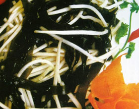 5.海带洗净,切成细丝;