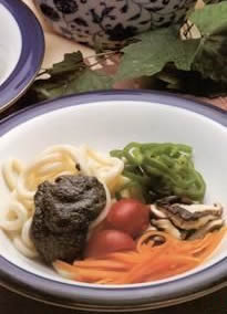 2、乌龙面于滚水中烫熟,摆盘。