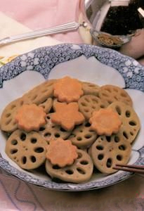 莲藕500公克,红萝卜200公克,酱油2匙,糖1匙,味素1匙,胡椒粉,香油少许
