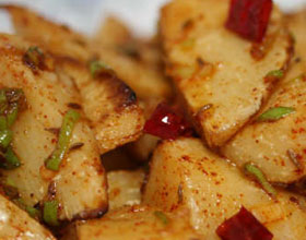 3.用香油、干辣椒、酱油、糖、味精调成汁,拌入笋条中即成。