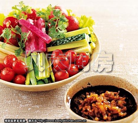 2、不喜吃肉的人可以不做肉酱,直接用鲜菜蘸甜面酱也很有风味。