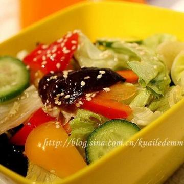 彩椒,黄瓜,生菜,木耳,熟芝麻(由于家里只有这些东西,最好还要,加入紫甘兰,苦菊,圣女果,熟花生米等等),