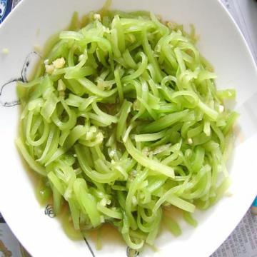 2、大蒜剁碎放入青笋中,最后加少许白糖、鸡精,滴入几滴香油即可。如果喜欢吃辣的可以加入油泼辣椒。