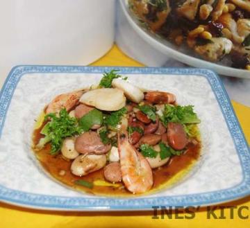 豆,意大利黑醋,综合香草,橄榄油,蒜蓉,菊花生菜,海鲜
