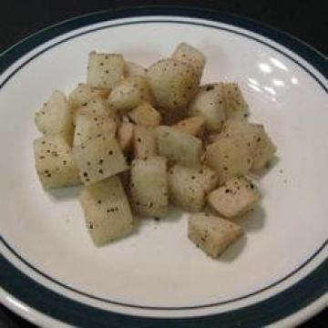 白萝卜175克,切碎,盐5克,米醋15毫升,黑胡椒0.5克,芝麻油1毫升(可选)