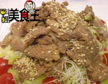 第二种:凉菜菜谱材料:,牛肉片100克,洋葱2个,西生菜3-4片,小黄瓜1条,苜蓿芽1盒,小蕃茄6颗,白芝麻2大匙,太白粉少许做法