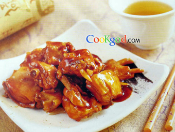 3、锅中加酱油、白糖、姜片、葱段、盐、鸡、清汤,用旺火烧开,小火烧20分钟,再转旺火烧至汤汁浓稠时加味精,至汤收干时盛入盘内,淋入香油即成。