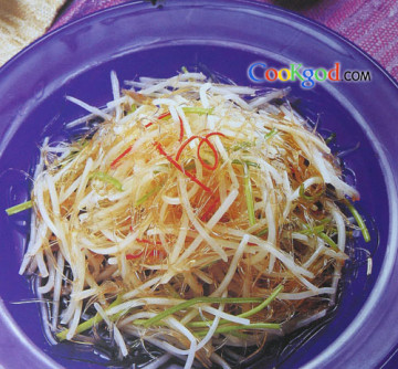 相关菜谱名称推荐:银芽拌翅丝,银芽拌翅丝,银芽拌鸡丝,银芽拌海蜇皮