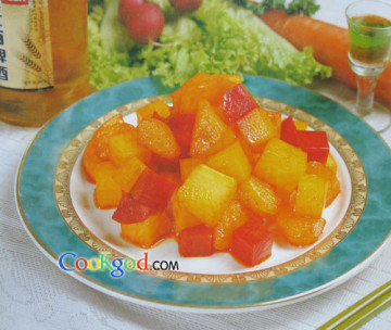 第一种:凉菜菜谱橙汁萝卜白梨块做法