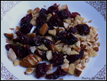 杏仁30克,核桃仁20克,蔓越莓适量。