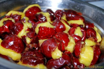 3、面团放到大枣里面;