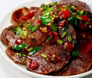 取2条煮好的牛腱切薄皮,中号锅,加橄榄油2茶匙,置炉上开中火,炒香蒜蓉,关火后趁热依次放下剩余3料和4料拌匀,然后放人切片的牛肉拌匀即可。