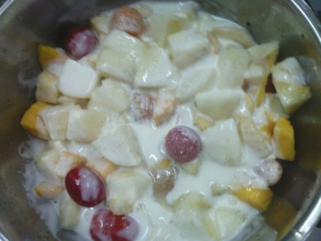 ②至于水果和酸奶的比例 我个人是2 :1 再加一汤勺细白砂糖就搞定了