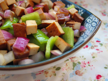 香干,圆葱,尖椒,香油,醋,糖,生抽,耗油