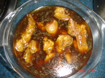 1.买回的猪蹄、猪爪、鸡腿、鸡爪等,清洁后锅里放冷水煮开(与冷水同煮,肉质会细嫩),加生姜,料酒,煮几分钟,倒掉水,顺便冲洗一下。