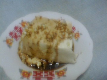 豆腐一块,酱油适量,大蒜2个,香油少许