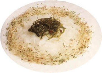 4、温室芽菜用冰水冲洗后沥干,围放碟边即成。