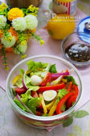 5都做好了,混合在一起,加上油醋汁就可以吃了。