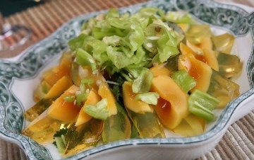 香菜拌毛肚、干豇豆拌鸡杂、自制柠檬沙拉酱。