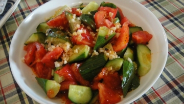 第一种:凉菜菜谱番茄拌小青瓜做法