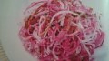 1.将两种萝卜丝和海蜇丝放在大碗里调拌均匀。
