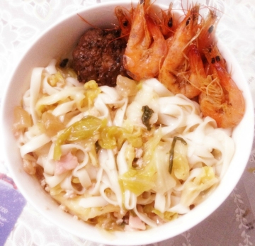 虾、卷心菜、方腿、面条、肉糜、橄榄油、老抽、茴香、黄酒、生姜、糖、盐、鸡精、生粉。