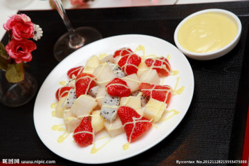 把水果切开,放入碗中,加酸奶,最后加上糖就可以了。