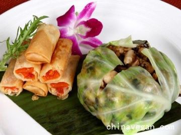 4)木瓜切条,加糖、沙拉酱用春卷皮包好,炸上色装盘即可。