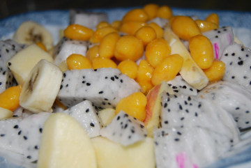 煮熟的南瓜圆子程金黄色的,非常漂亮。糯糯的南瓜圆子与甜脆的水果一起入口,再加上酸奶那种特有发酵的甜酸味,真的不会让你失望。