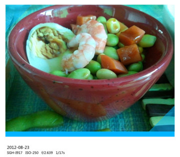 5、一切准备就绪,吃的时候,自己随意挑选,用醋汁酱拌自己喜欢的毛豆鸡蛋沙拉。