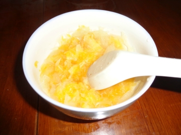 2.将这两种水果肉用白糖或蜂蜜拌一下即可