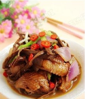 第五种:凉菜菜谱黄豆酱茶树菇烧鸡腿做法