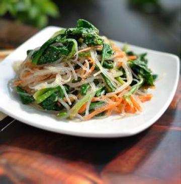 芥末粉适量粉丝 适量胡萝卜 适量菠菜 适量精盐 适量生抽 适量香油 适量