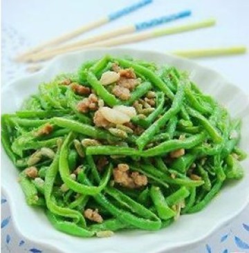 1.肉馅加少许老抽,生抽,料酒腌制20分钟待用。2.豆角洗净从中间切一刀,下热水里焯熟。3.捞出后立刻浸泡凉水。控干水份后,用手把豆角从中间撕成两半.锅里热油,下葱姜爆香,入腌制好的肉馅,立刻划散,不停的翻炒均匀盛出备用