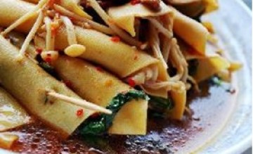 第一种:凉菜菜谱新派豆腐皮拌金针菇做法