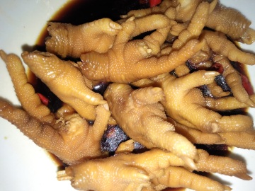 2.捞出放凉后,减去脚尖,肢解成2--3块(这样吃起来方便);