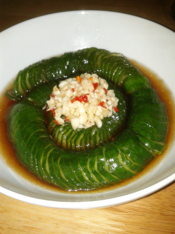 2,掉个的时候,一定要45度的刀法切,不然黄瓜还是会断。