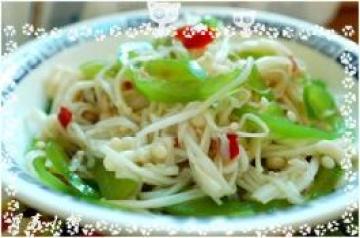 第一种:凉菜菜谱青椒丝拌金针菇做法