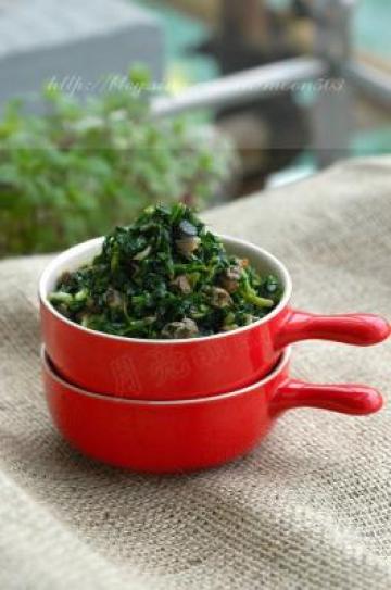 6.把螺蛳肉、切碎的马兰放一大碗里,放盐、鸡精拌匀,再淋上香麻油拌匀即可