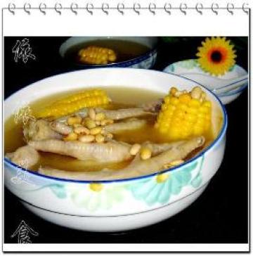 黄豆大约100克,鸡脚8只,甜玉米一只