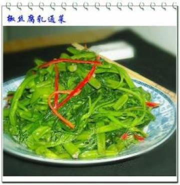 通菜600克,红辣椒2个,腐乳2块,蒜头2瓣,盐少许,鸡精少许