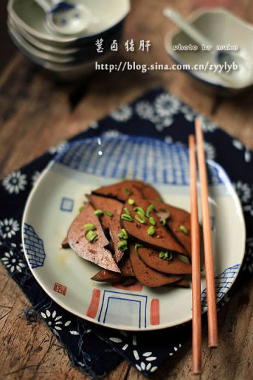 材料:猪肝200g,八角,花椒等香料若干,姜,蒜头和青蒜适量。