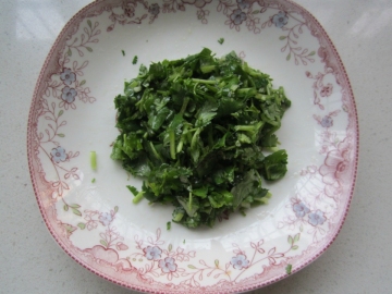 1、香菜去根洗净切碎。