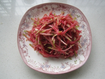 第三种:凉菜菜谱甜丝丝(梨丝凉拌心里美)做法